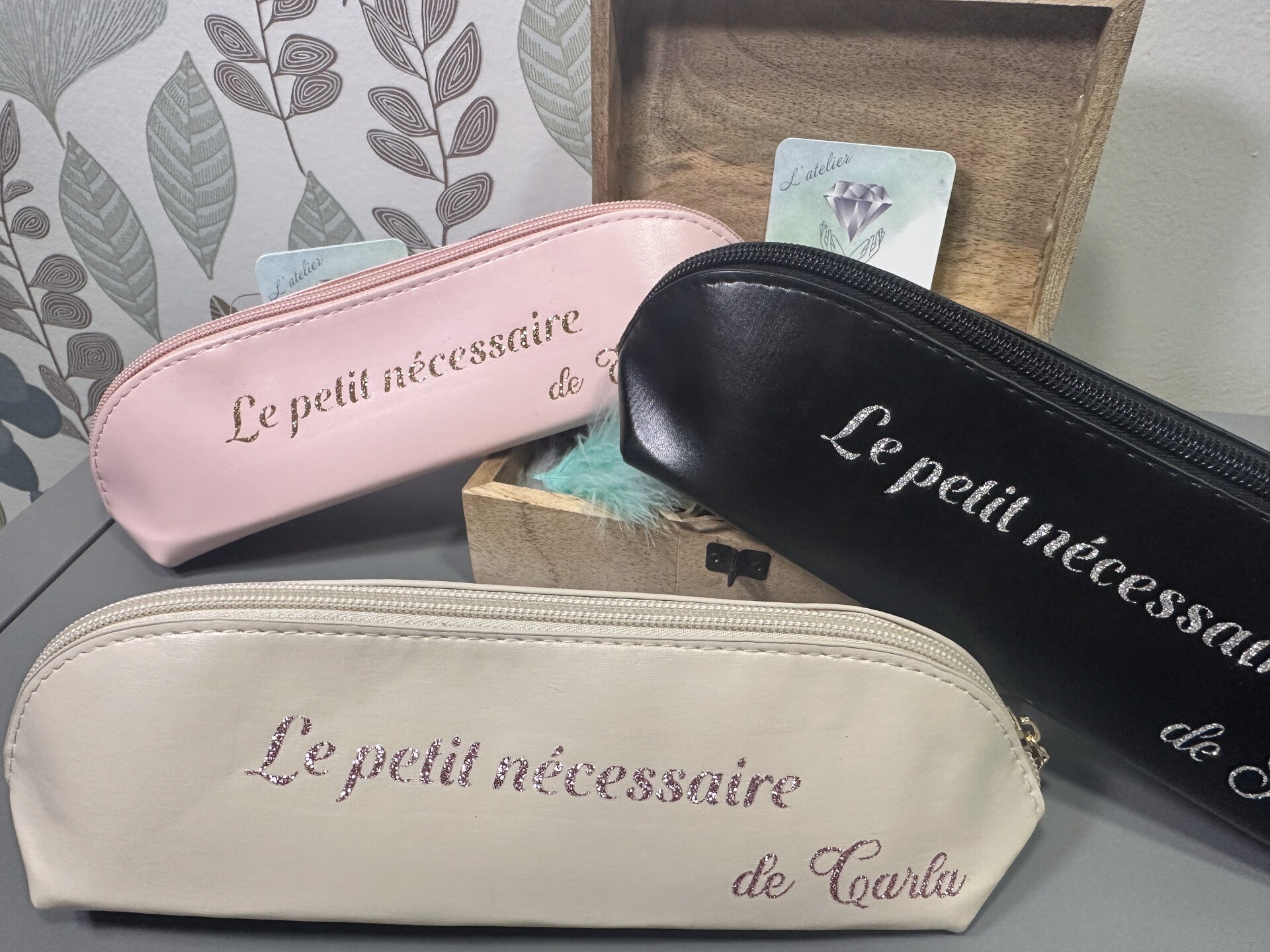 Découvrez notre trousse à maquillage personnalisée, parfaite pour organiser vos essentiels beauté. Compacte et chic, elle se glisse aisément dans votre sac pour vous accompagner partout. Personnalisez-la avec votre prénom pour une touche unique et personnelle.
