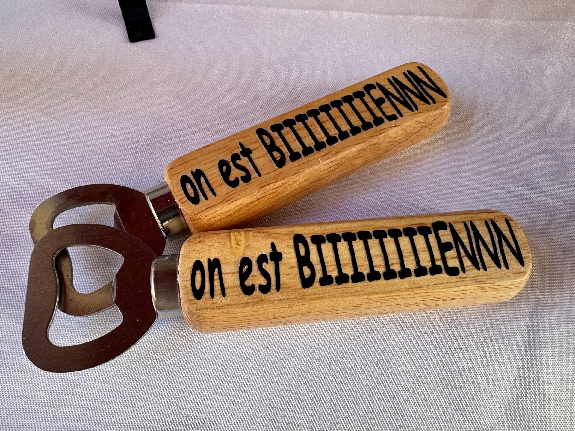 Ajoutez une touche personnelle à vos moments festifs avec notre décapsuleur personnalisable. Fabriqué en bois durable, il est parfait pour ouvrir vos bouteilles avec style. Personnalisez l'inscription pour un cadeau unique et mémorable, idéal pour toutes les occasions.
