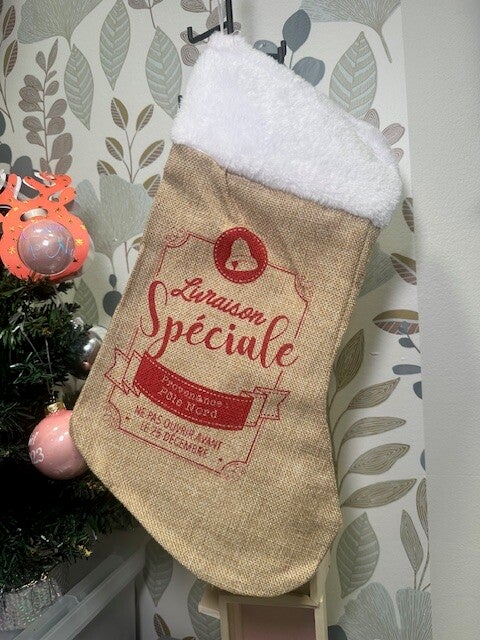 Ajoutez une touche magique à votre décor de Noël avec nos chaussettes de Noël personnalisées à suspendre ! Fabriquées en feutrine ou toile de jute, ces chaussettes sont conçues pour accueillir tous les petits trésors que le Père Noël pourrait apporter. Chaque chaussette peut être personnalisée avec le Prénom de votre choix.