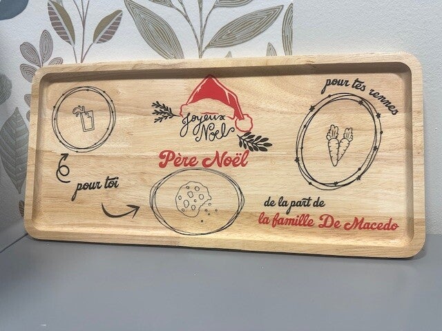 C'est une belle façon d'impliquer les enfants dans la magie de Noël, en leur permettant de participer à la préparation de ce moment spécial. En plus d'être pratique, le plateau personnalisé de votre nom de famille ou des prénoms des enfants peut aussi devenir un objet de décoration, apportant une touche festive à votre table ou votre cheminée.